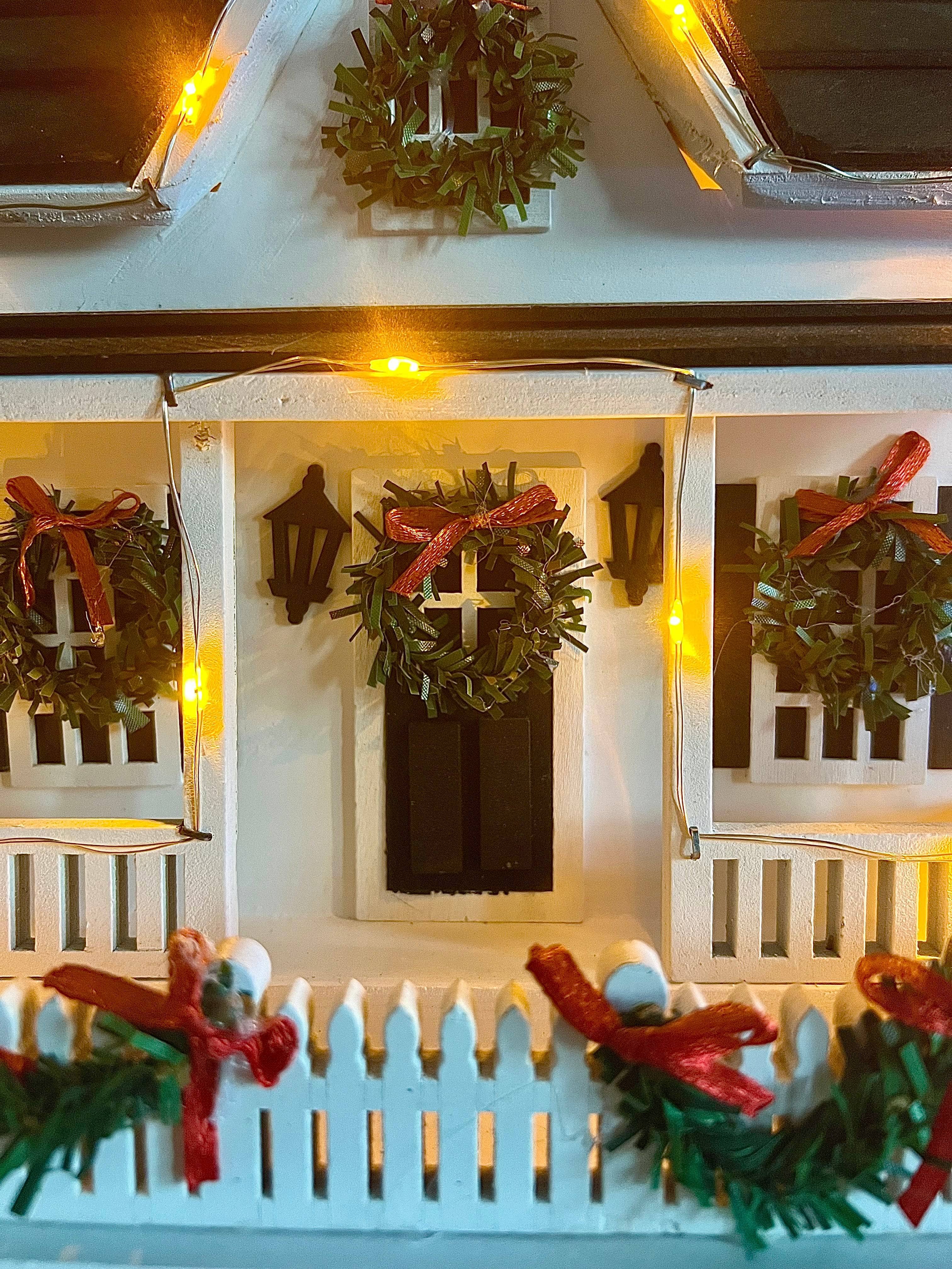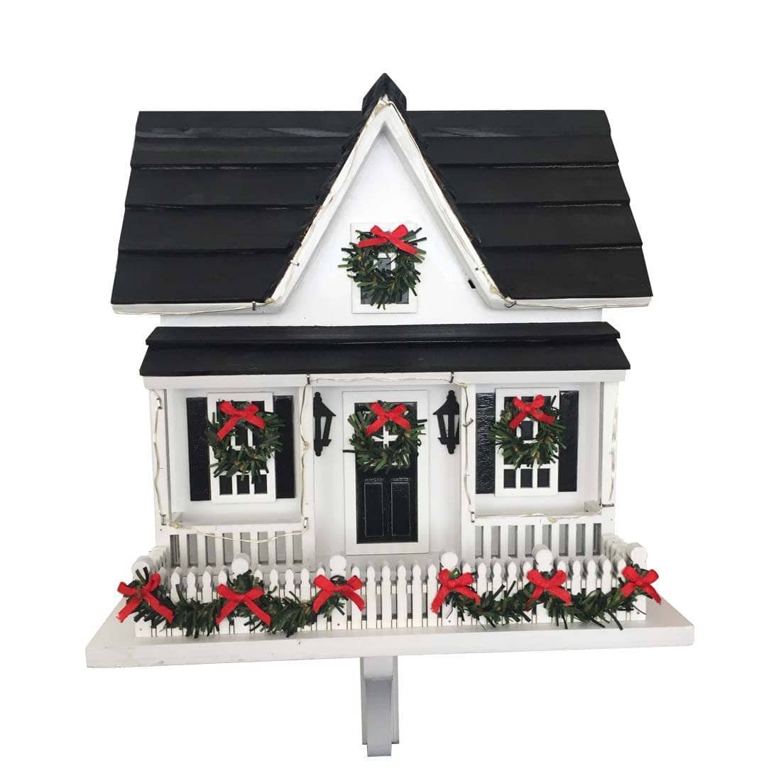 Give the birds a beautiful home for the holidays. This delightful birdhouse this a welcomed addition for the holidays to be used inside or outdoors. Decorated with miniature LED Lights, which give the house an inviting warm glow. Holiday wreaths are hung on the front door and windows. We've added a spray of garland across the fence that welcomes you and your birds. Details include a great little porch combined with a fully functional removable back wall. Drainage & ventilation, make this the ultimate Holiday Birdhouse. Comes equipped with a mounting bracket for easy installation.