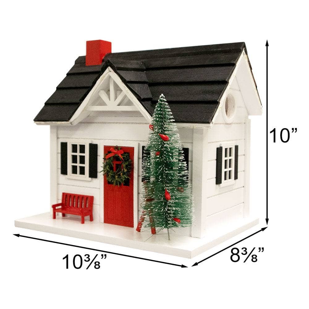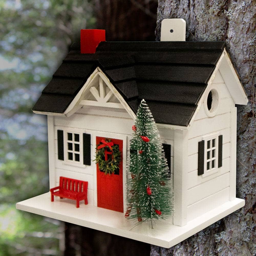 Our Holiday Ski House has all the details for a functional birdhouse, cleanout drainage and ventilation. You may want to consider keeping this piece inside to enjoy the winter season. If not, wrens, finches, chickadees, nuthatches, and titmice are the likely birds to nest here.