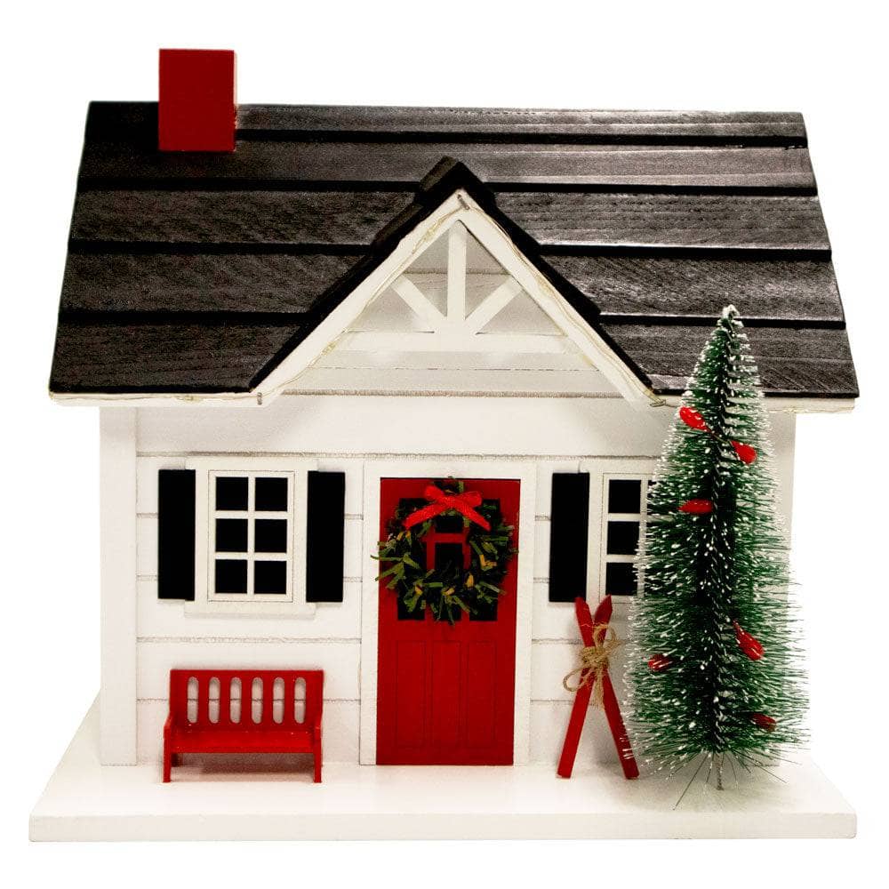 Holiday Ski House with LED Lights – the perfect vacation house. Light up the slopes with the mini white led lights which requires 3 AA batteries not included and timer 6 hours on/18 hours off.