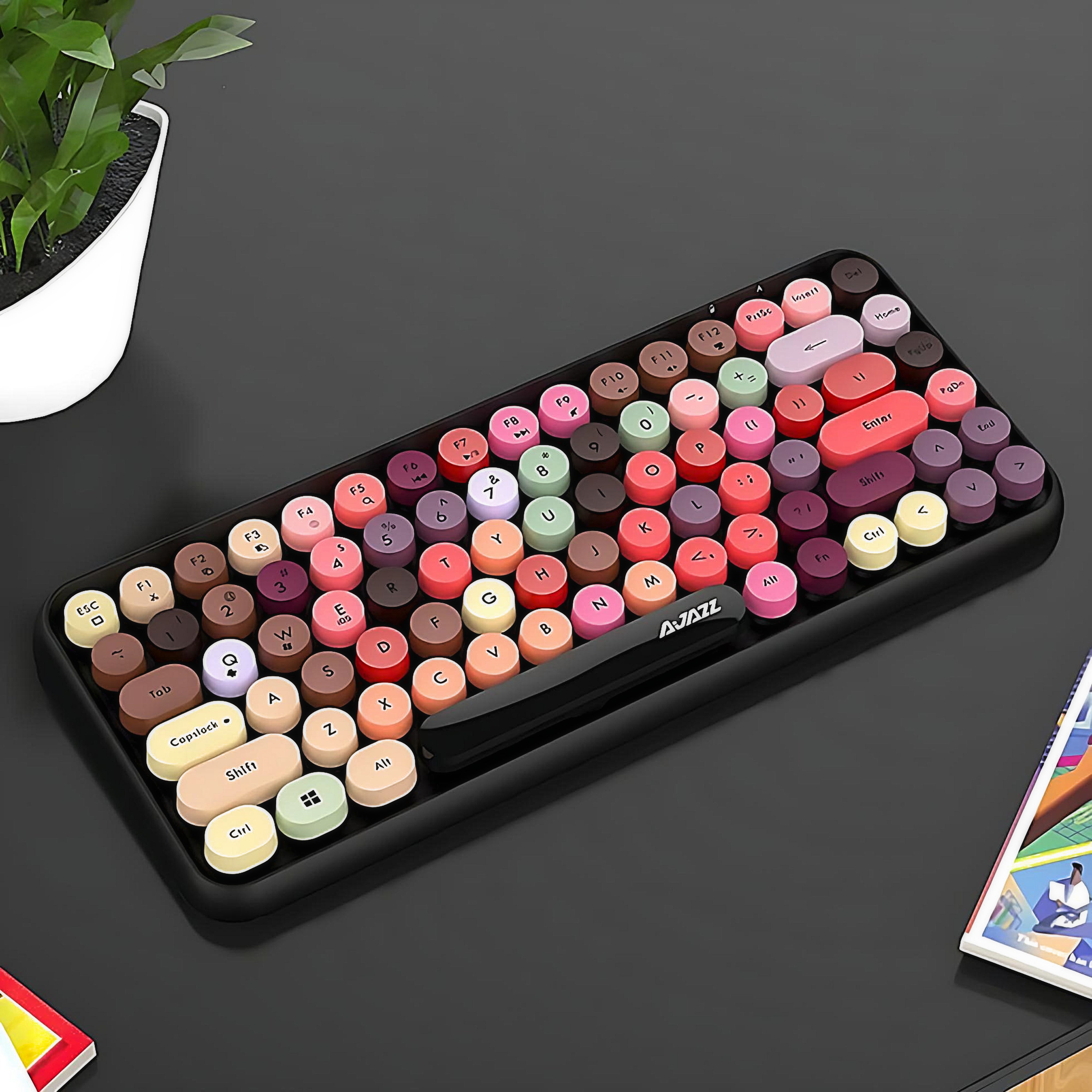 Our vividly colored Ajazz wireless keyboard will brighten up your workday. The keys on the keyboard are designed to look like those on an ancient typewriter, which will inspire you to write!